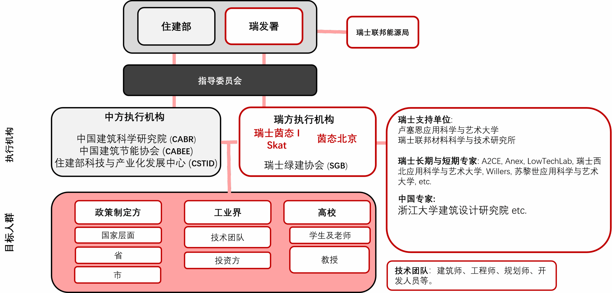 项目由住房和城乡建设部(MoHURD)与瑞士发展与合作署(SDC)共同提供战略指导,实施团队由以下机构组成: