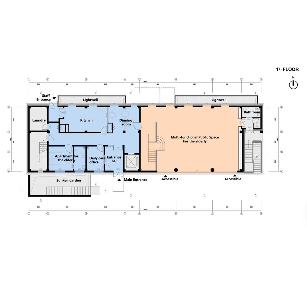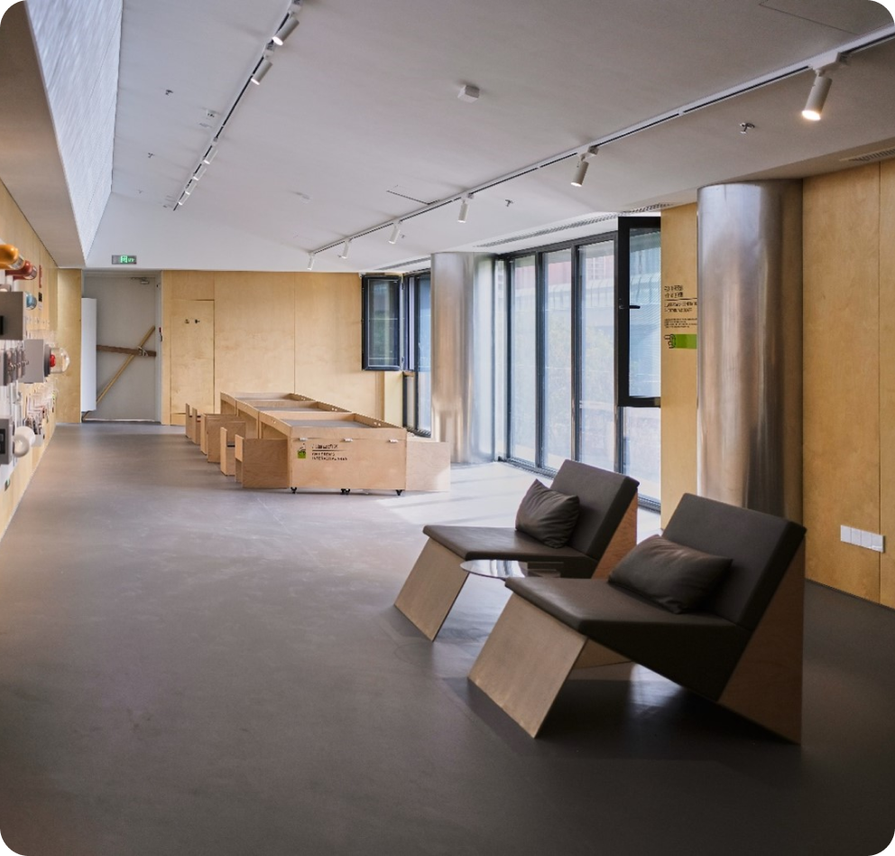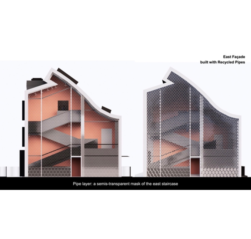 除了运营能耗,该项目还关注材料碳排放,使用回收管材和木材,并尽量减少混凝土用量。被动设计策略包括优化采光、自然通风和灵活的空间布局,在提升舒适性的同时降低能源需求。这些综合措施展示了通过设计驱动实现碳减排的可能性,使该建筑成为寒冷气候下可持续建筑的示范。