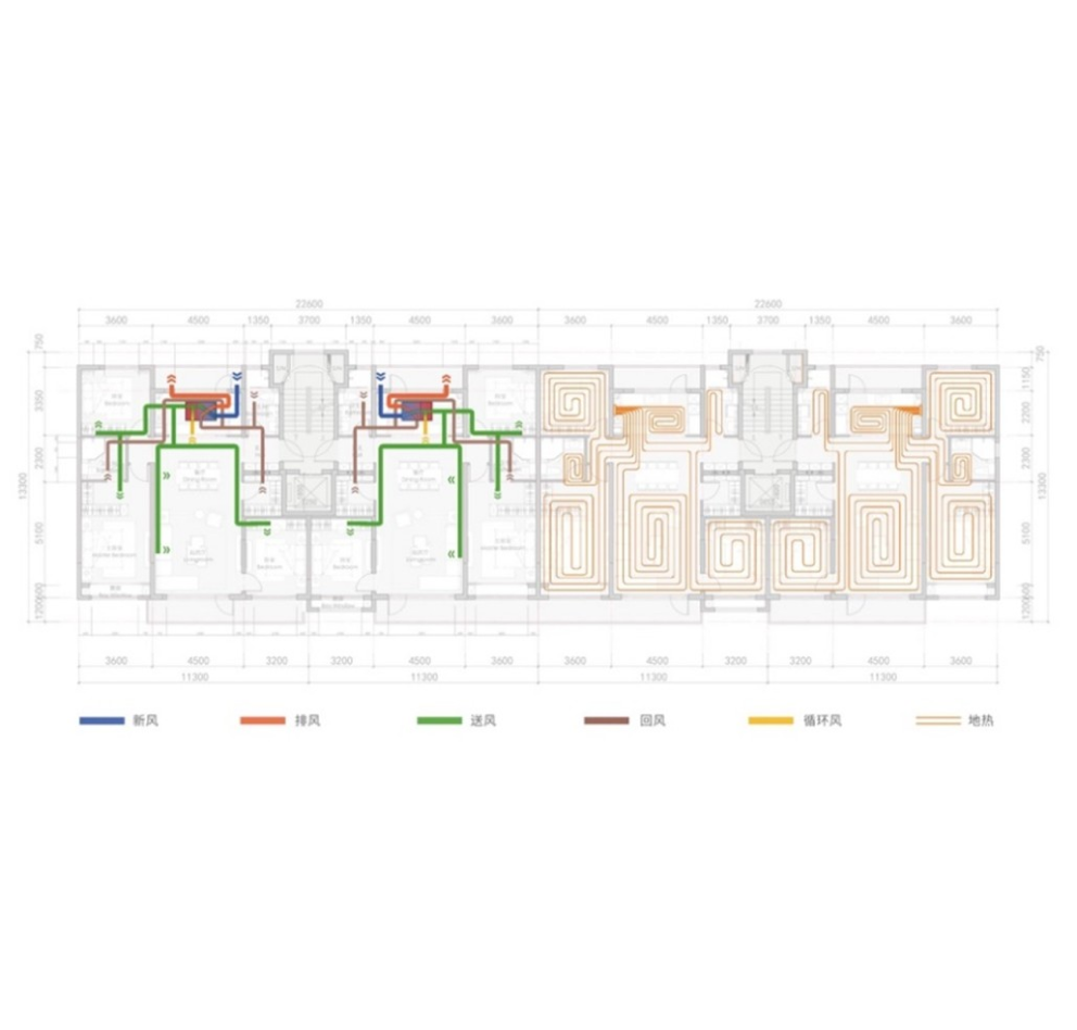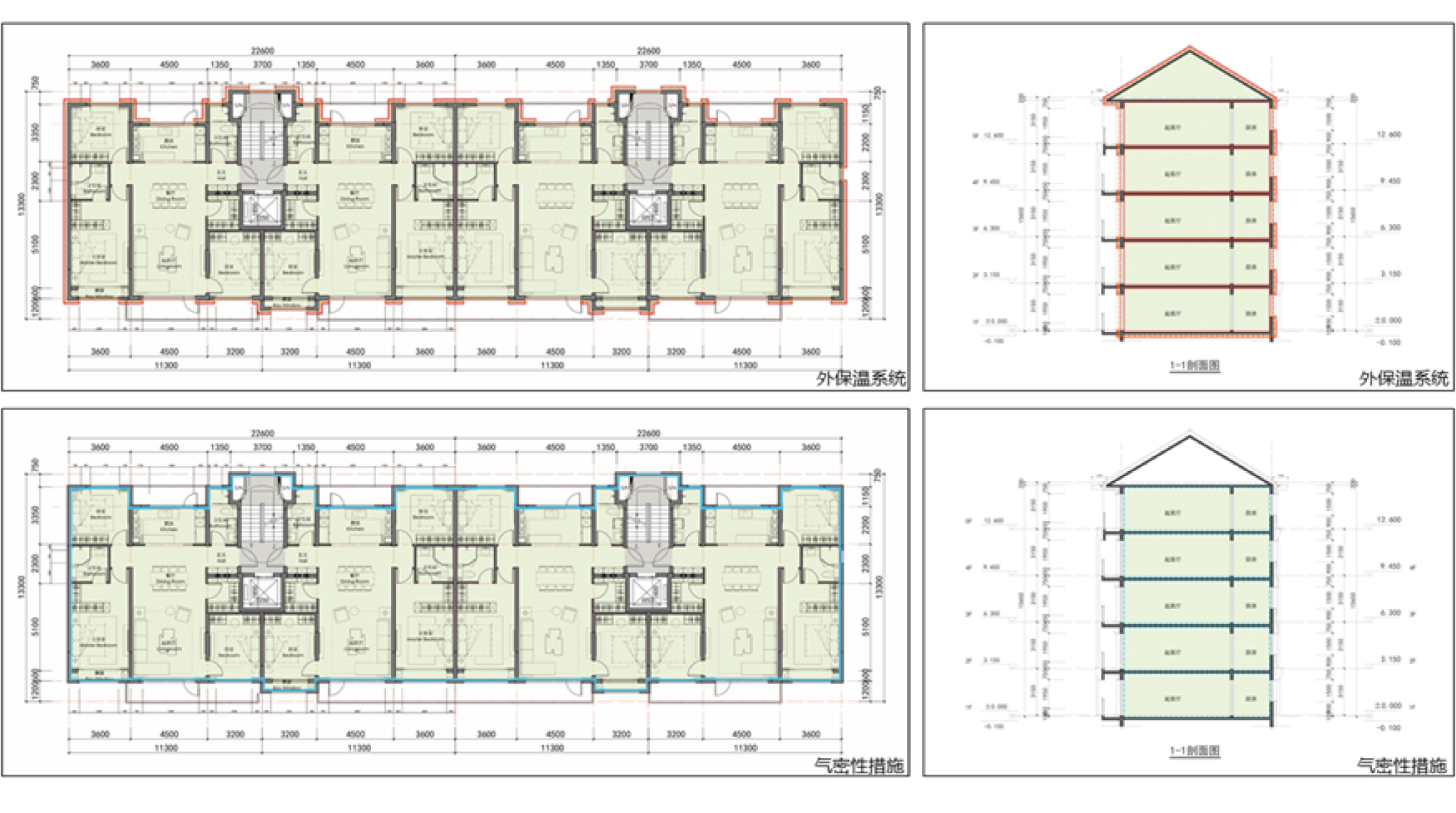 被动设计也是重点,包括高性能门窗、动态遮阳系统和紧凑建筑体量以降低能耗。此外,幼儿园纳入能源系统,并规划电动车充电站,体现了城区级能源整合理念。