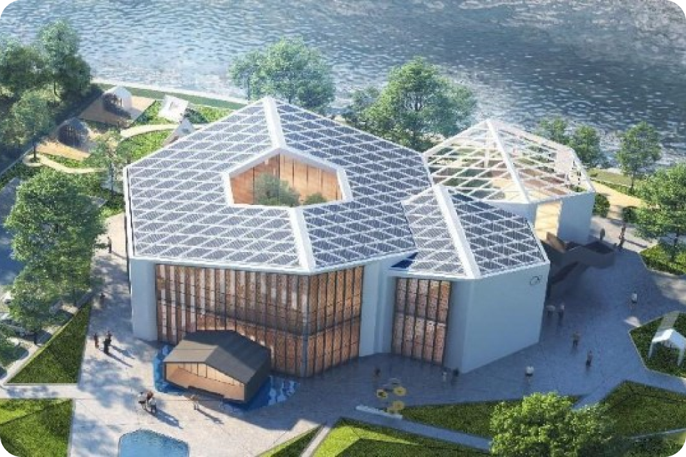 循环建筑原则贯穿设计,包括可拆卸设计、回收材料再利用及生态友好景观布置。灵活的室内布局支持长期适应性与可持续使用。