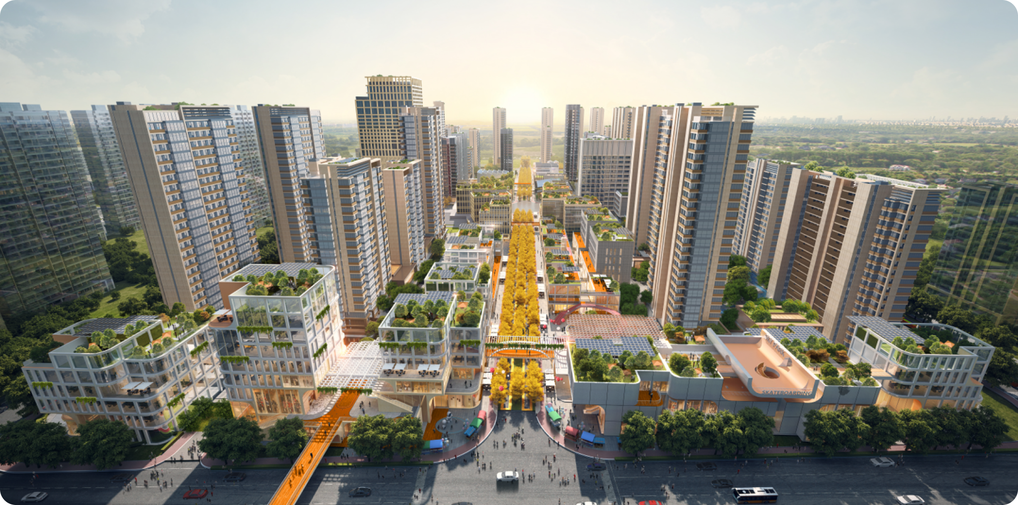 市集建筑采用钢木结构和回收材料,屋顶 186 kWp 光伏系统为照明、空调和电动车充电提供电力。被动设计策略包括通风双屋顶、大型 HVLS 风扇、自然采光和遮阳。厨房废物现场堆肥,智能系统管理温湿度。