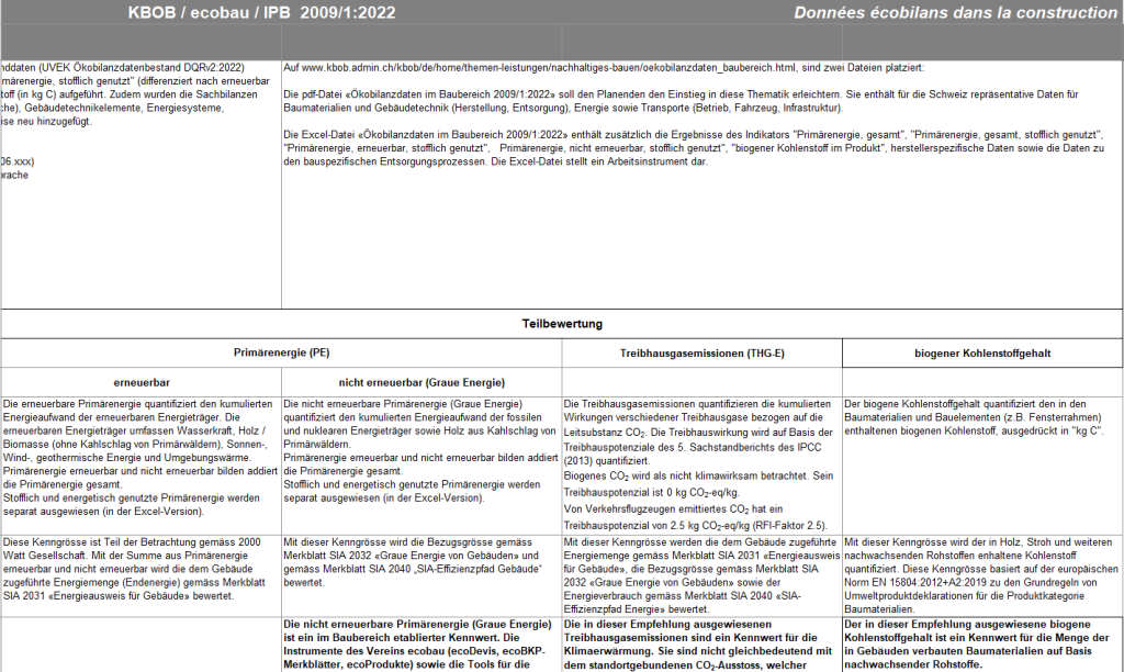 KBOB – 建筑行业生命周期评估数据 (中文/英文)