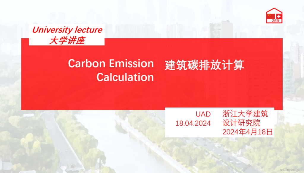The lecture emphasizes Sino-Swiss ZEB cooperation, highlighting decarbonization, efficiency, circular economy, and integrated planning for sustainable construction.