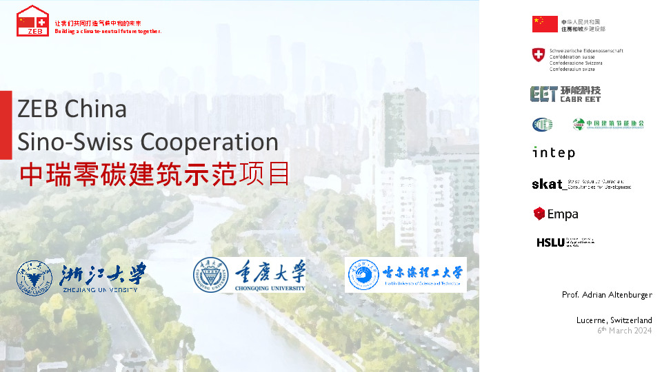 This lecture covered zero-carbon building design, material selection, energy use, and carbon emissions, with case studies from China and Switzerland.