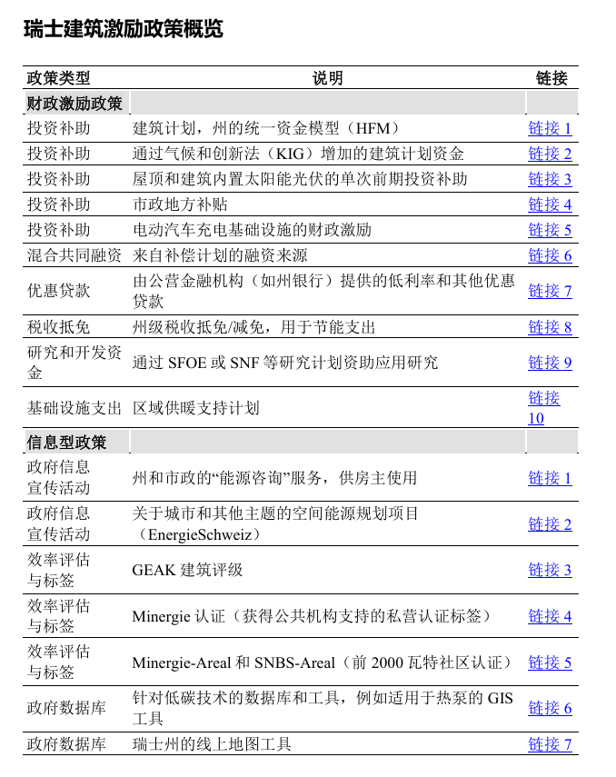 本报告概述了瑞士推动建筑脱碳的关键激励政策,重点关注金融与信息工具。
